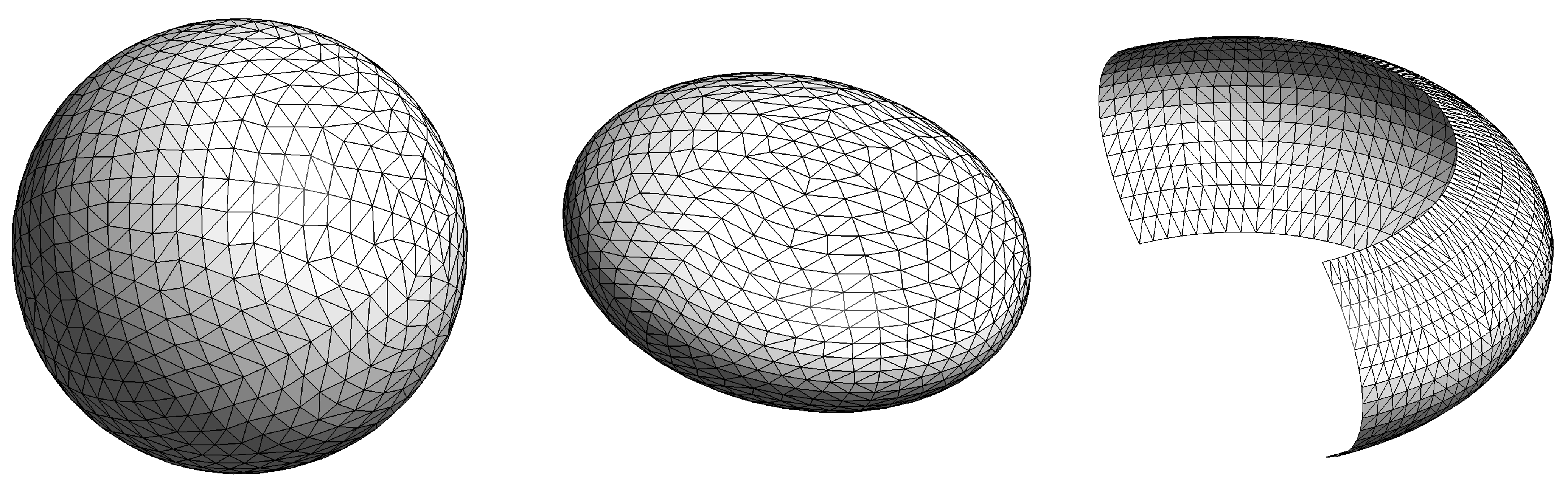 Fig. 77 Structured mesh of boundary of sphere, ellipsoid and part of ellipsoid.#