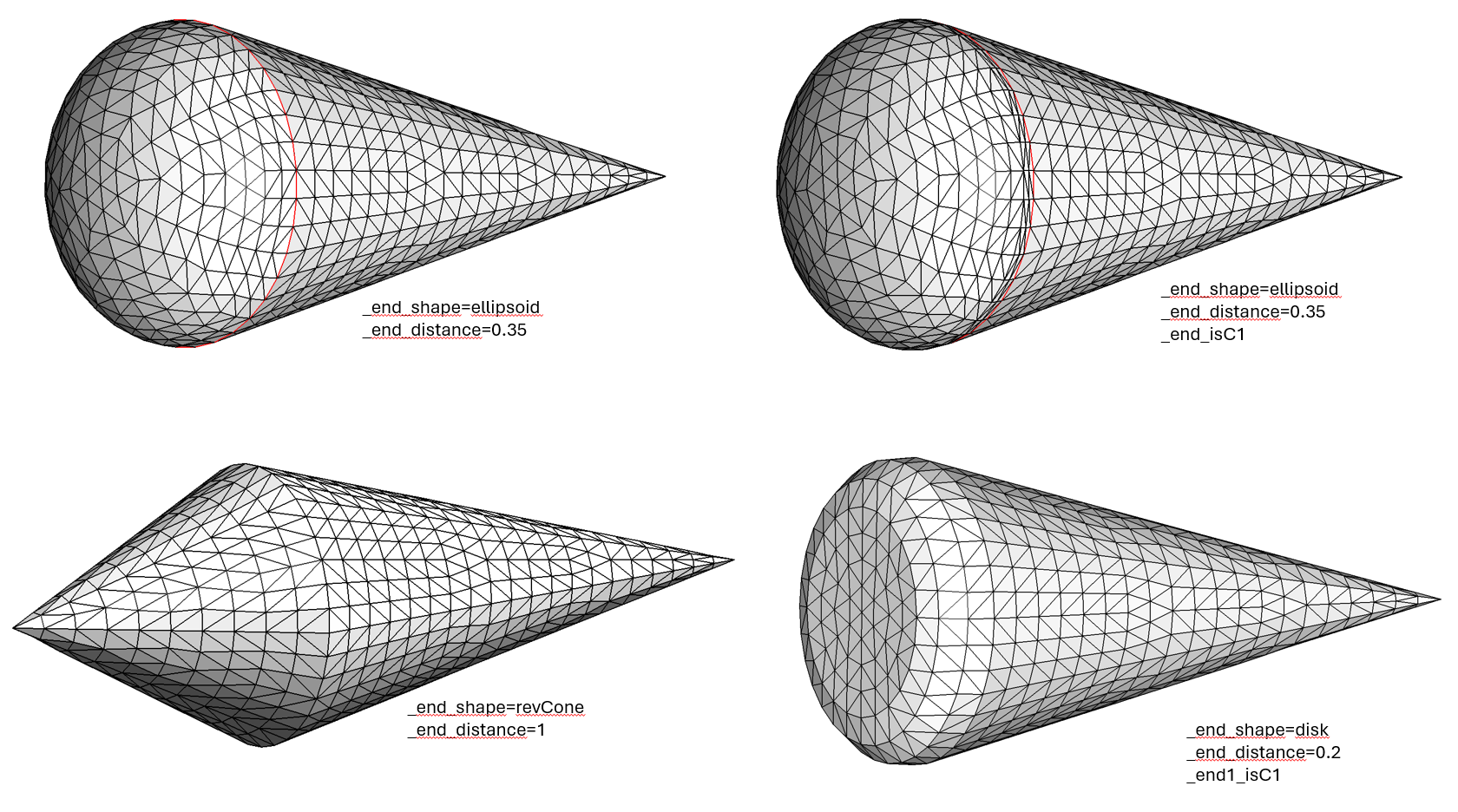 By using this layered approach, the boundary of Sphere, Ellipsoid or part of may be meshed in a P1 structured way: